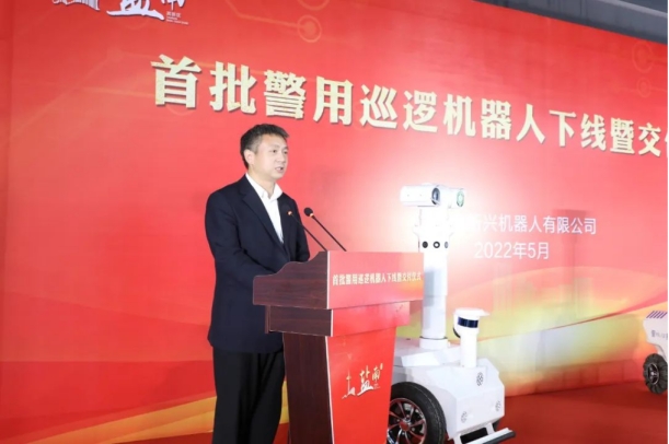 大数据集团总经理李天松在致辞中介绍了大数据产业园发展情况。“首批警用巡逻机器人成功下线并交付,必将为盐南机器人产业发展注入新动力、激发新活力,更为我们高举机器人发展旗帜坚定了信心。”李天松在致辞中还衷心祝愿高新兴机器人公司勇攀高峰、踏浪领跑,希望企业持续强化管理、研发创新。希望各参会部门一如既往地关心支持企业发展,各尽所能、主动服务、排忧解难,为企业的发展壮大保驾护航,以最大的诚意、最好的政策、最优的服务,全力做好各项支持工作,用心、用情、用力打造创新创业高地,营造良好的投资环境、厚植成就事业的沃土,为盐南高质量发展贡献更大的力量。