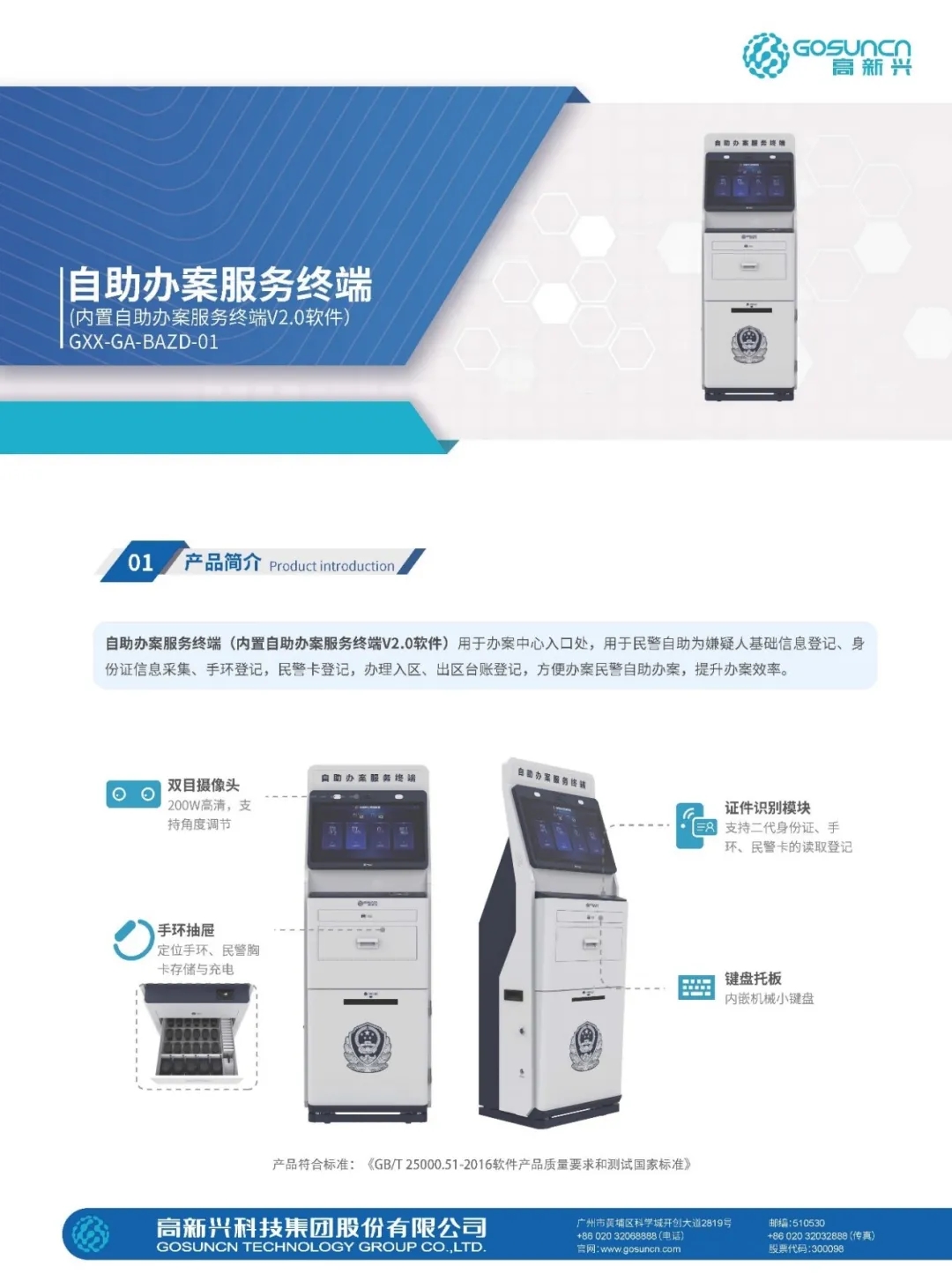高新兴入围产品:自助办案服务终端 型号:GXX-GA- BAZD-01(含自助办案服务终端V2.0)