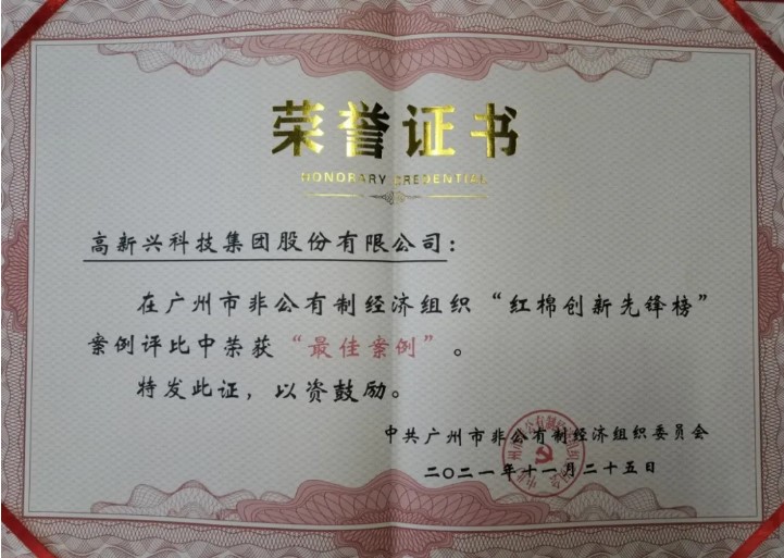 为进一步发挥全市非公经济组织党组织的政治功能和党员的先锋模范作用,广州市非公党委在全市非公经济组织中开展“红棉创新先锋榜”活动。其中,高新兴科技集团从全市众多案例中脱颖而出,荣获“红棉创新先锋榜”最佳案例,突出展示了广州民企“以党建引领创新、以科技赋能生活”的创新理念。