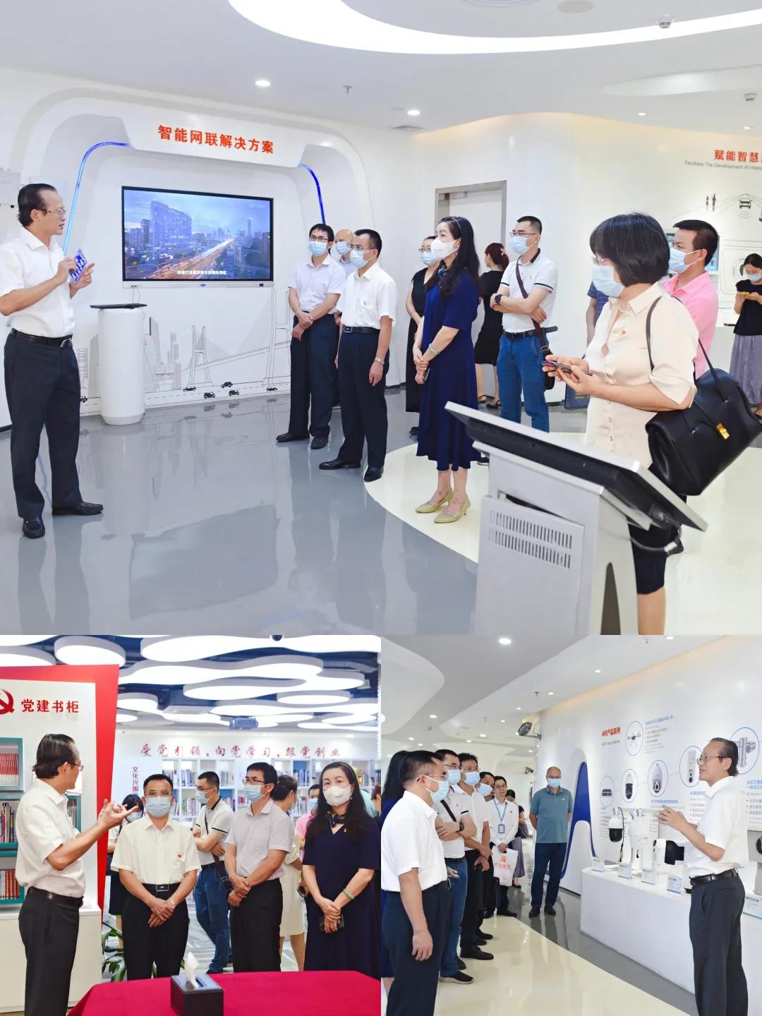在黄国兴书记引导下,省、市、区工商联领导们先后参观了集团科技展厅和智慧党建展厅。