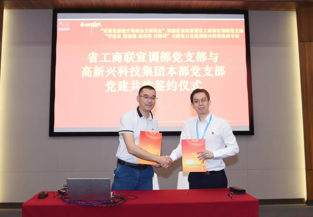 广东省工商联宣调部党支部与高新兴科技集团本部党支部签订党建共建签约仪式,有利于机关与企业党建工作相互学习和相互促进。
