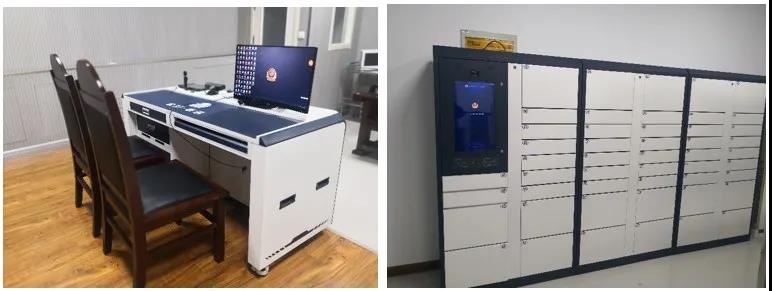 高新兴执法办案中心围绕公安部“四个一律”的要求,通过配备办案自助终端、人脸流程管控终端、智能审讯台、智能案管柜、电子签名捺印仪等信息化智能设备,实现嫌疑人在办案区内全流程管控,全程录音录像,保障执法办案工作合法合规。对不规范流程及异常行为进行监督预警,对人员登记、随身物品存取、候问、询/讯问、出区等环节进行全流程信息化、规范化的管理,实现“一站式”执法办案、全流程监控、多数据采集。