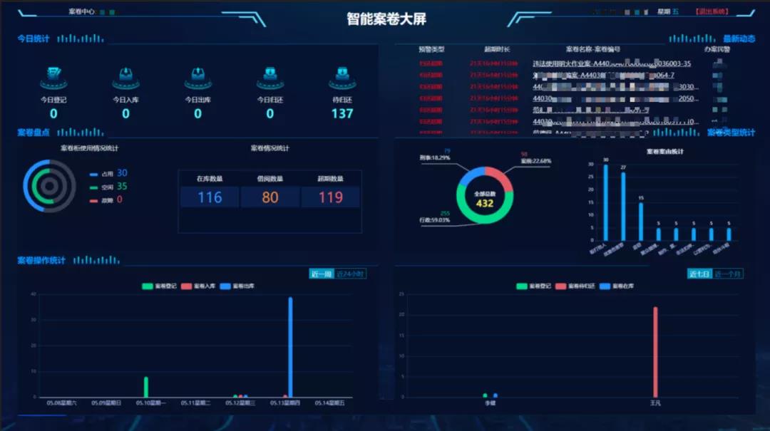 高新兴案管中心通过数据分析、人脸识别、RFID定位、OCR识别等创新技术推动案卷管理模式新变革,实现案卷材料与当事人、案件信息的关联复用和数据流转;支持对案卷材料登记、入库、借阅、归还、出库等管理;支持人脸识别、二维码、电子标签、智能案管柜等信息化手段对案卷材料进行管理。