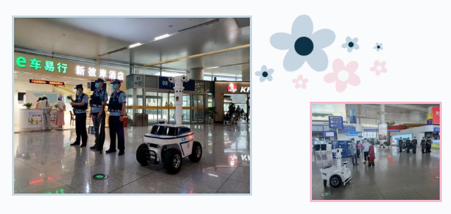 在机场出发大厅,机器人完成日常巡逻和维持秩序工作,提醒旅客安全注意事项,在巡逻过程中实时检测周边环境,机器人可以原地转弯,发现重点人员、异常跑动、争吵打架等行为会进行语音制止并上报到后台。烟台公安通过部署5G警用巡逻机器人,有力推动了巡防智慧化、巡防力量多元化和出警查处精准化建设,动态应对各类突发事件,密织了一张全天候、全时段、全方位的巡逻防控网络。