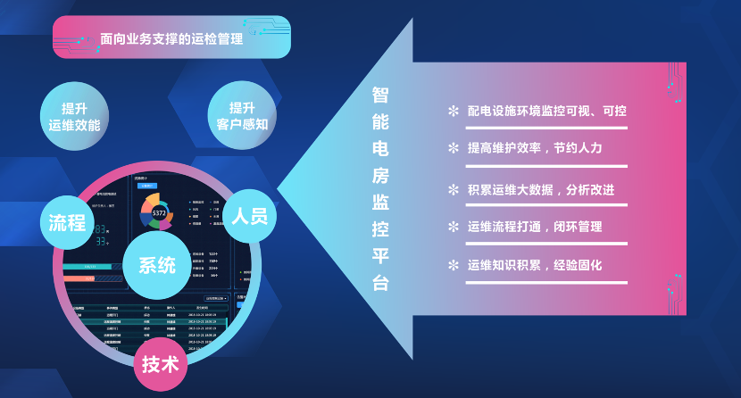 针对以上隐患痛点,高新兴科技集团自主研发了智能配电设施监控系统,通过环境监控(温湿度、危险气体、水浸、烟雾、噪声等)、联动控制(空调、抽湿机、风机、灯控、水泵等)、设备监测(直流屏、设备温度、局部放电)、安防监控(红灯、警灯、门禁、视频监控等)等方式进行配电设施环境等全栈监控,对主要因素进行汇集、分析,构建了“线上监控+线下运维+全流程监管”的创新模式。