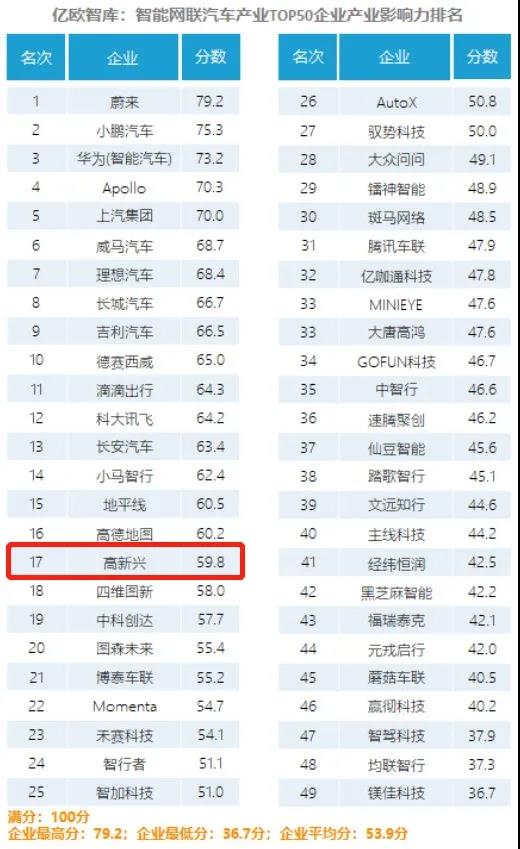 智能网联汽车整车智能化水平进一步提升,离不开信息交互、人工智能、安全技术、高精地图、高精度定位等基础技术支撑以及国家标准体系的建设。站在技术落地时间节点,亿欧智库根据品牌影响力、技术影响力、资本影响力和生态影响力4个维度,向行业展示出目前发展的总体竞争情况,帮助企业认清未来发展趋势,加速竞争壁垒建设,更好实现商业落地。在亿欧智库监测期内,高新兴以主流媒体品牌青睐度、深厚的技术积累及完善的生态圈建设脱颖而出,成为智能网联汽车领域Top20企业。