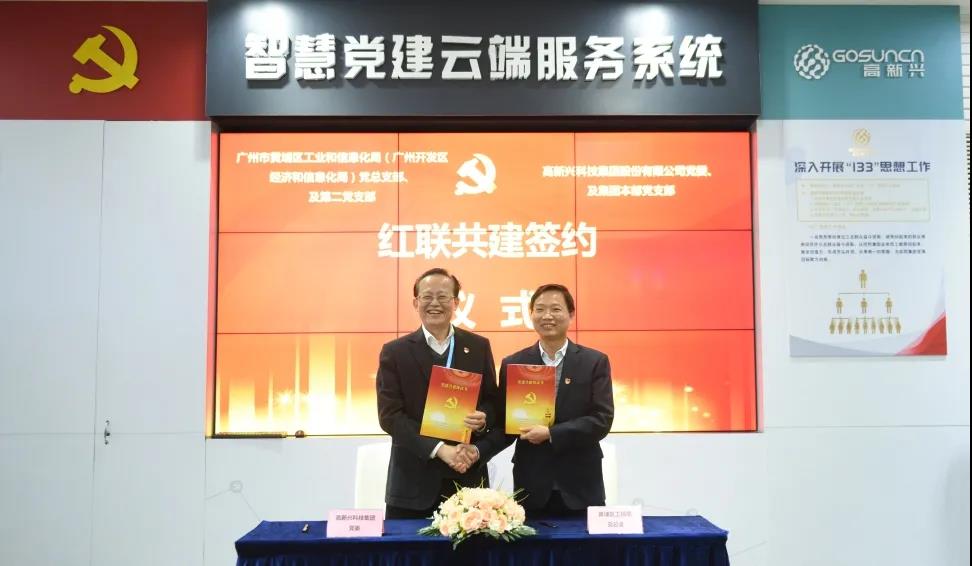 黄埔区工信局党组书记黄辉龙与高新兴科技集团党委书记黄国兴签署“党建共建”协议。