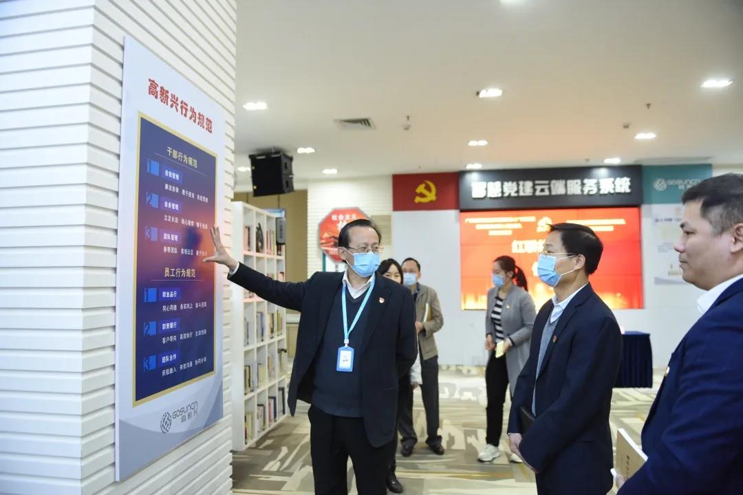 签约仪式前,黄辉龙书记一行先后参观了高新兴科技集团业务展厅以及高新兴智慧党建活动中心,深入了解高新兴的技术产品及业务情况,详细交流高新兴集团智慧党建工作开展经验。