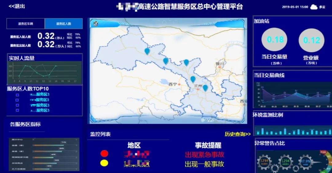 聚焦“管理+运营+出行”三大服务,实现对客流车流监控、重点车辆监控、服务环境监测、应用指挥协调、数据报告推送、信息发布等全息感知管控,逐渐形成信息化带动服务的优化、管理的质变,为服务区运营提供重要支撑。