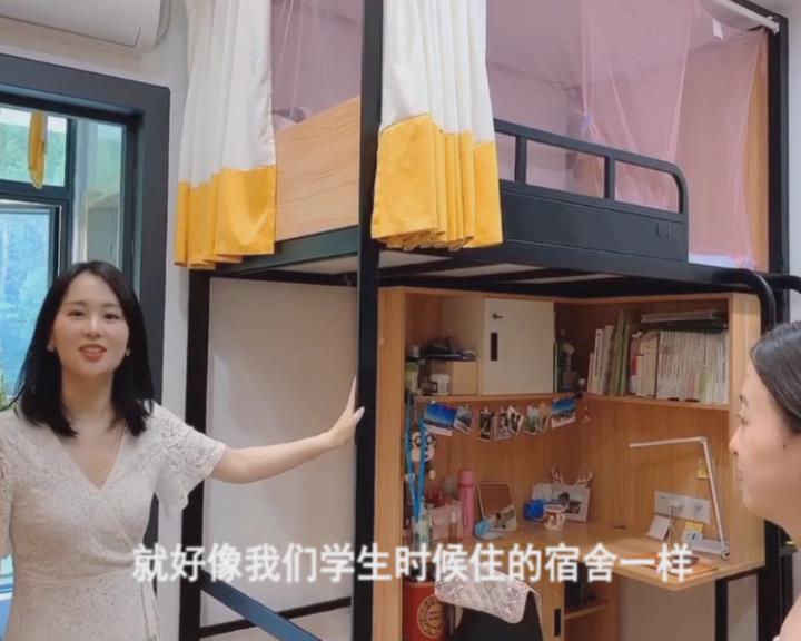 在宿舍区,小羊先是“眼馋”Loft公寓拎包入住的配置,又在其普通公寓里找到了青春的气息,仿佛回到了大学宿舍。