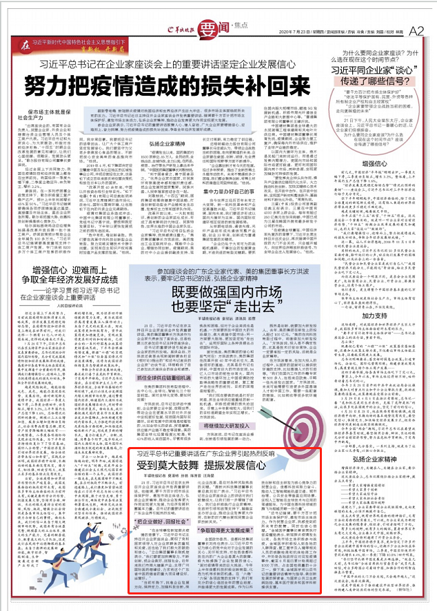 7月21日,中共中央总书记、国家主席、中央军委主席习近平在京主持召开企业家座谈会并发表重要讲话。他强调,要千方百计把市场主体保护好,激发市场主体活力,弘扬企业家精神,推动企业发挥更大作用实现更大发展,为经济发展积蓄基本力量。总书记的重要讲话在广东企业界引起强烈反响。