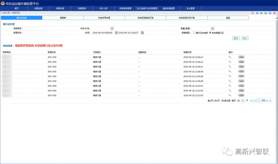 我司在天津滨海新区部署的危化品运输车辆监管平台和信息展示业务系统,实现了涵盖危化品运输车信息、货物信息、人员信息、通行证信息、通行信息、违法信息在内的危化品车辆信息库的构建,完成危化品车辆数据的统一共享,加强对危化品运输车辆运行监管力度。在系统上线运行1年时间内,监控36万次过车记录,包括未办理通行证违规上路查获1598辆,未按专用道行驶查获6920辆,区间超速查获1828辆;检测视频识别错误2689条,进出园区41220次,节省核验时间1374小时。