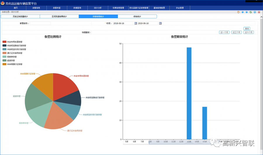 根据危化品运输车辆行政类处罚类型,次数多少,进行分色预警、分类管理,分级监控,强化危化品运输源头监管,降低道路安全事故隐患。