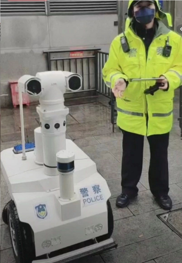 在一线,高新兴自主研发的巡逻机器人在上海与民警共同“执勤”,在人流较为集中的外滩区域,喊话提醒行人时刻注意个人安全防范。协助民警坚守一线,为群众的健康安全护航。