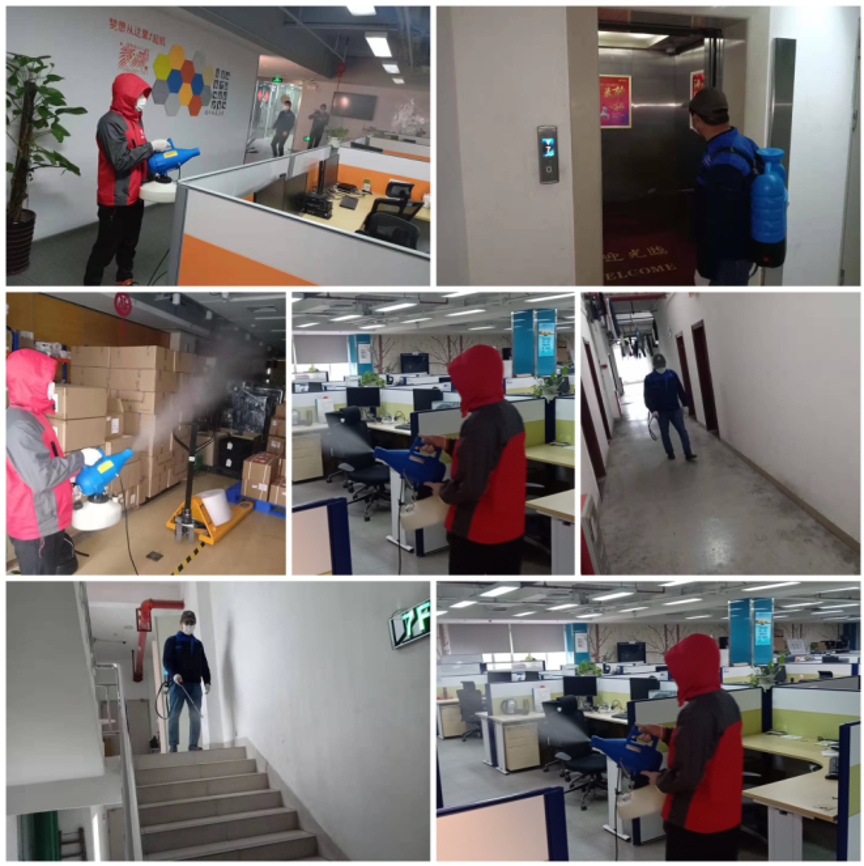 在复工前,集团组织物业加强相关场所清洁,对办公区、会议室、食堂、宿舍以及班车进行全面的消毒杀菌,对电梯、会议室、展厅等重点区域增加消毒频次,确保环境卫生,迎接员工复工。集团各园区严格对出入人员进行体温测量,并在公共宣传区域对新型冠状病毒防疫措施进行宣传,做好疫情排查预警、防疫知识宣贯的工作。